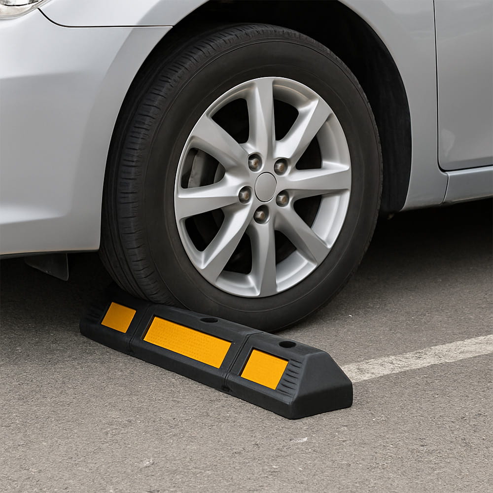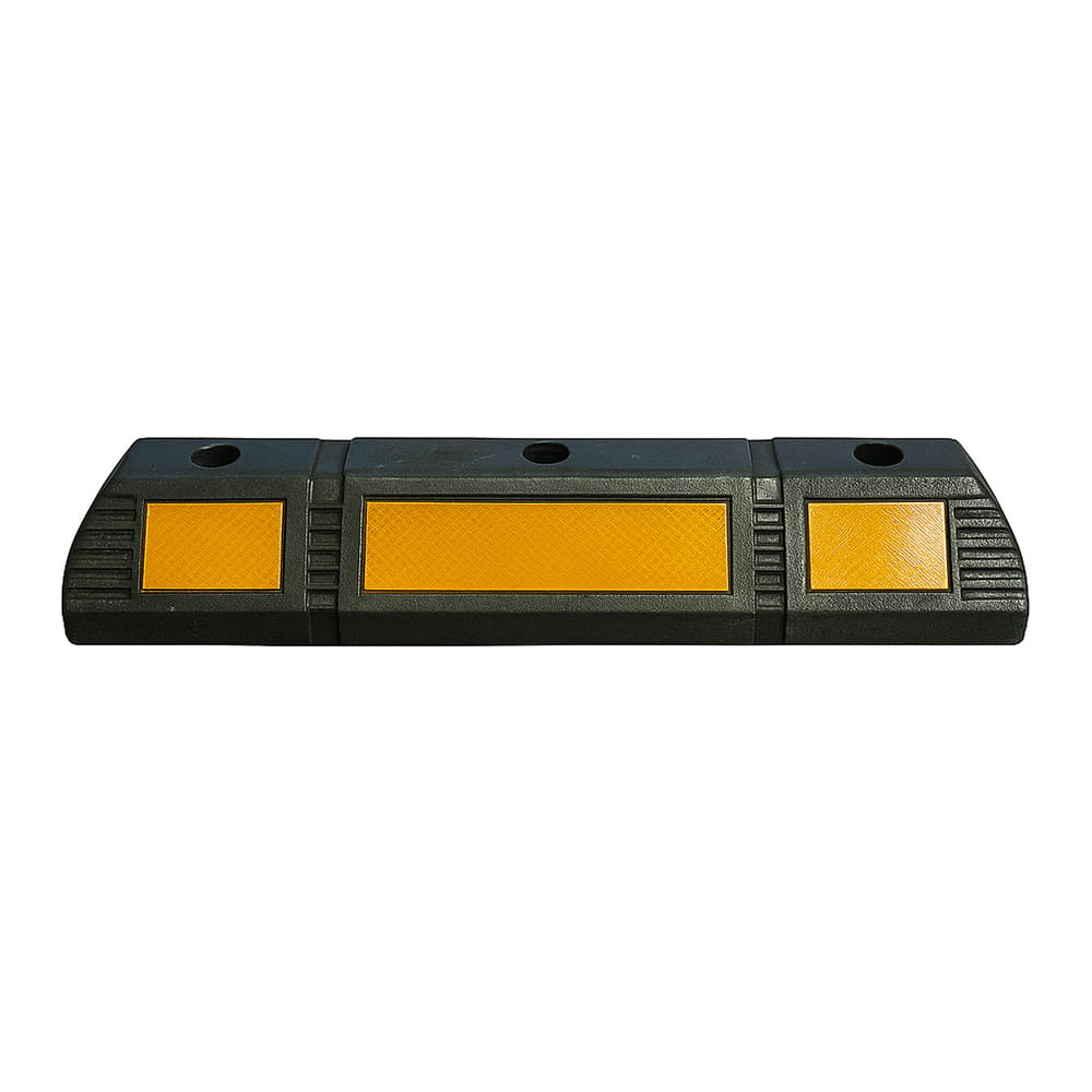 Butée de stationnement en caoutchouc – 59 cm, avec bande réfléchissante, 1 pièce pour l'arrêt des roues de voiture.